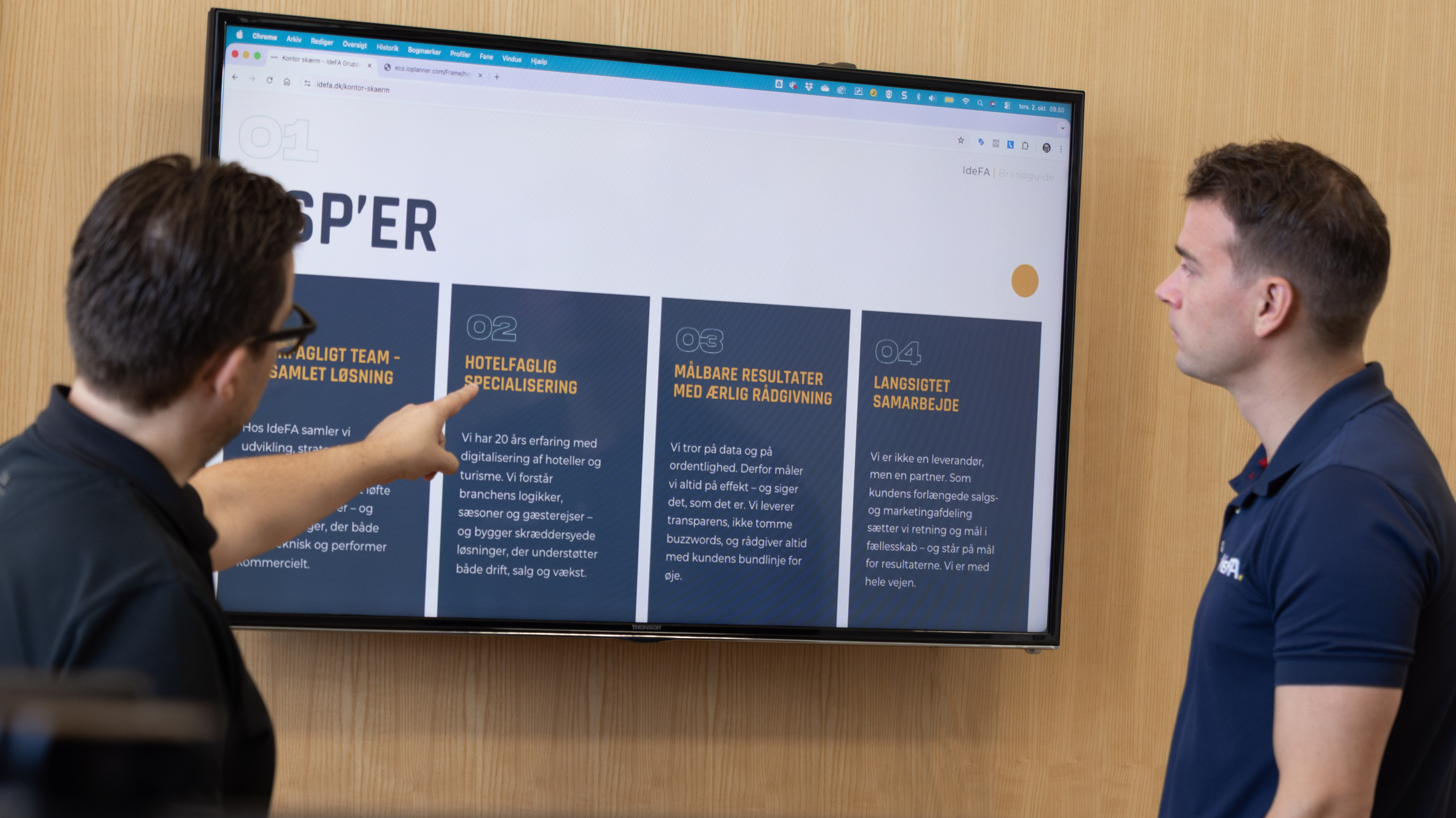 Hos IdeFA Hotelsalg arbejder vi hver dag for at styrke den digitale performance hos vores samarbejdspartnere. Det betyder, at vi måler, analyserer, bygger, retter til, tester – og gør det hele igen – med ét mål for øje: at fylde værelser og skabe synlige resultater.